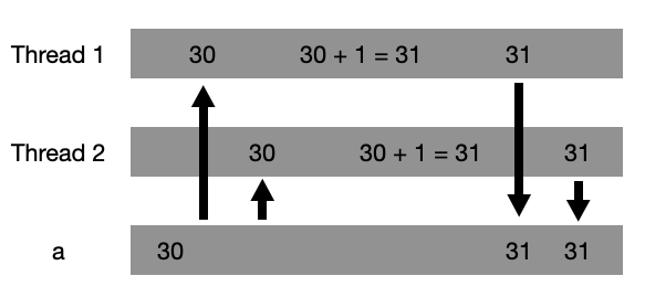 原本預期會要執行兩次 a++ 變為 32,但結果卻是 31。